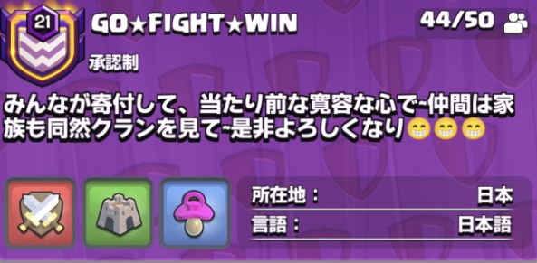 【クラン名】GO★FIGHT★WIN