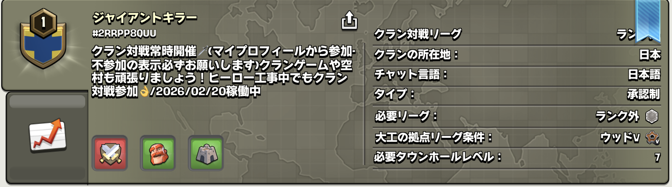 ・URL:https://link.clashofclans.com/jp?action=OpenClanProfile&tag=2RRPP8QUU![]()