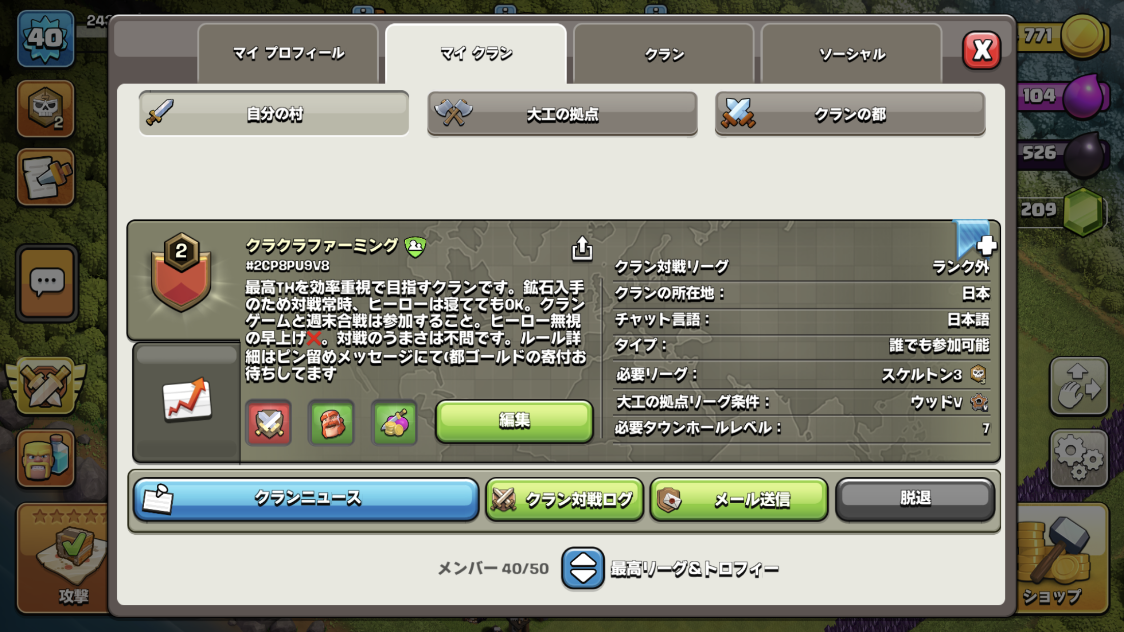 クラン名:クラクラファーミング