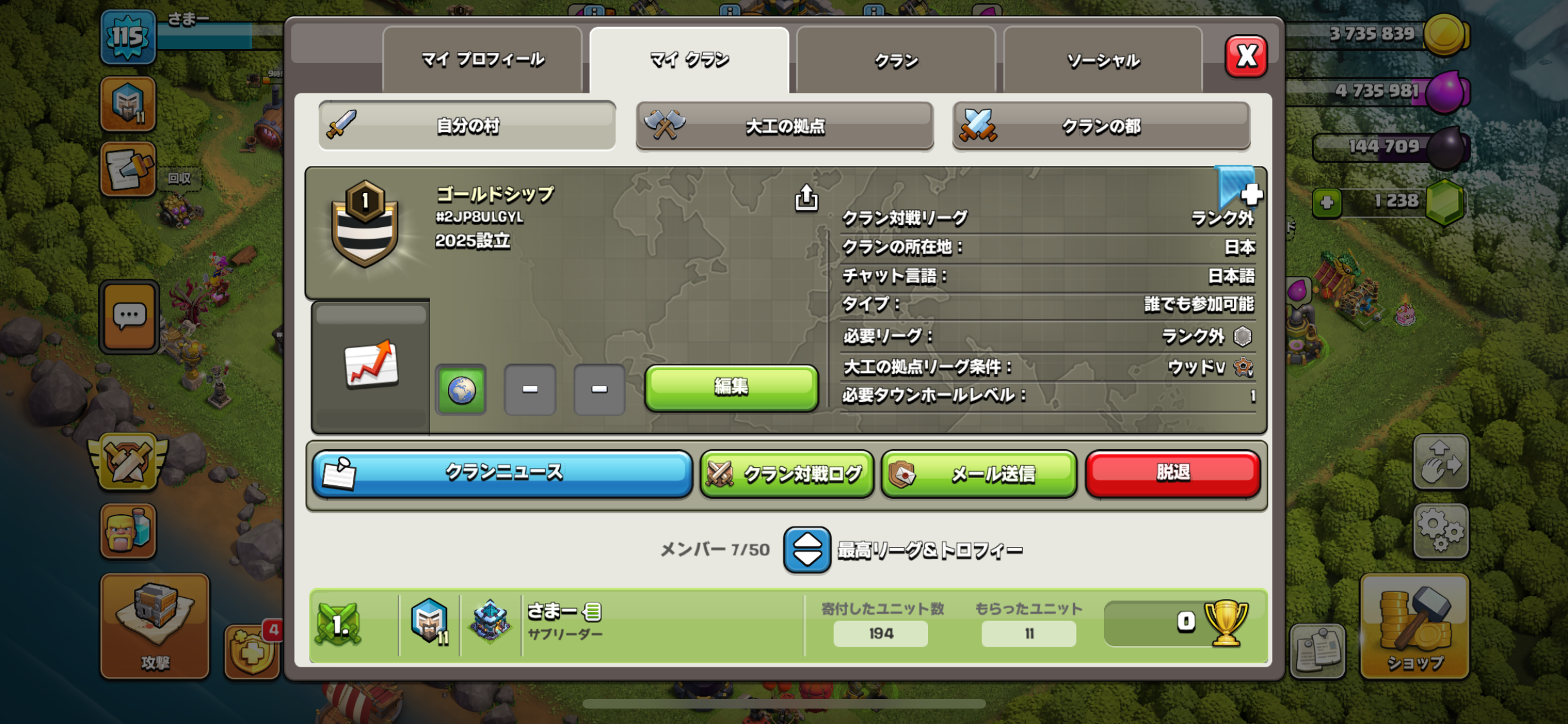 完全に村の育成して強化だけを目的としたクランです。