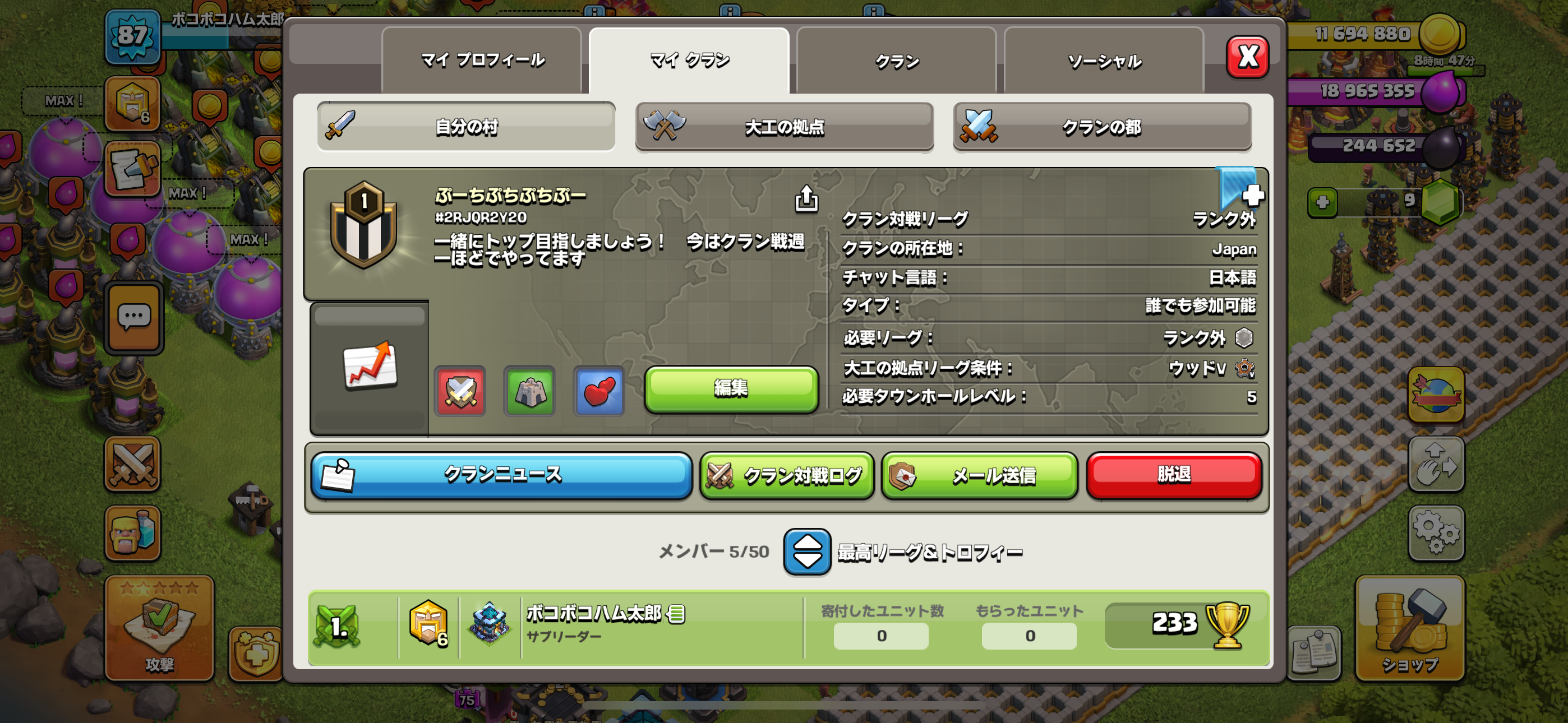 一緒にクランを育ててくれる方を募集しています( •̀ω•́ )