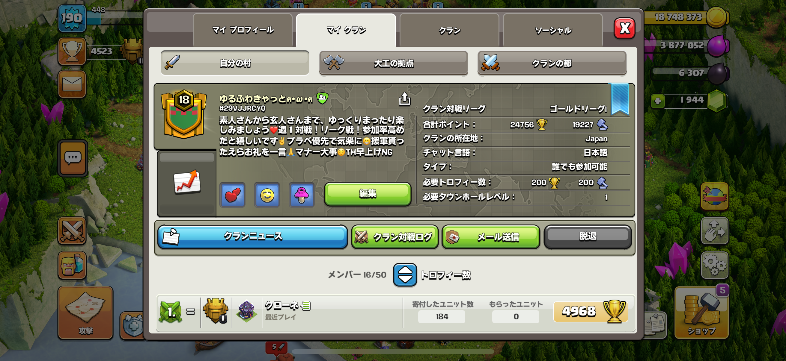 8/18日に作りたてなので一緒にクランを育てましょう