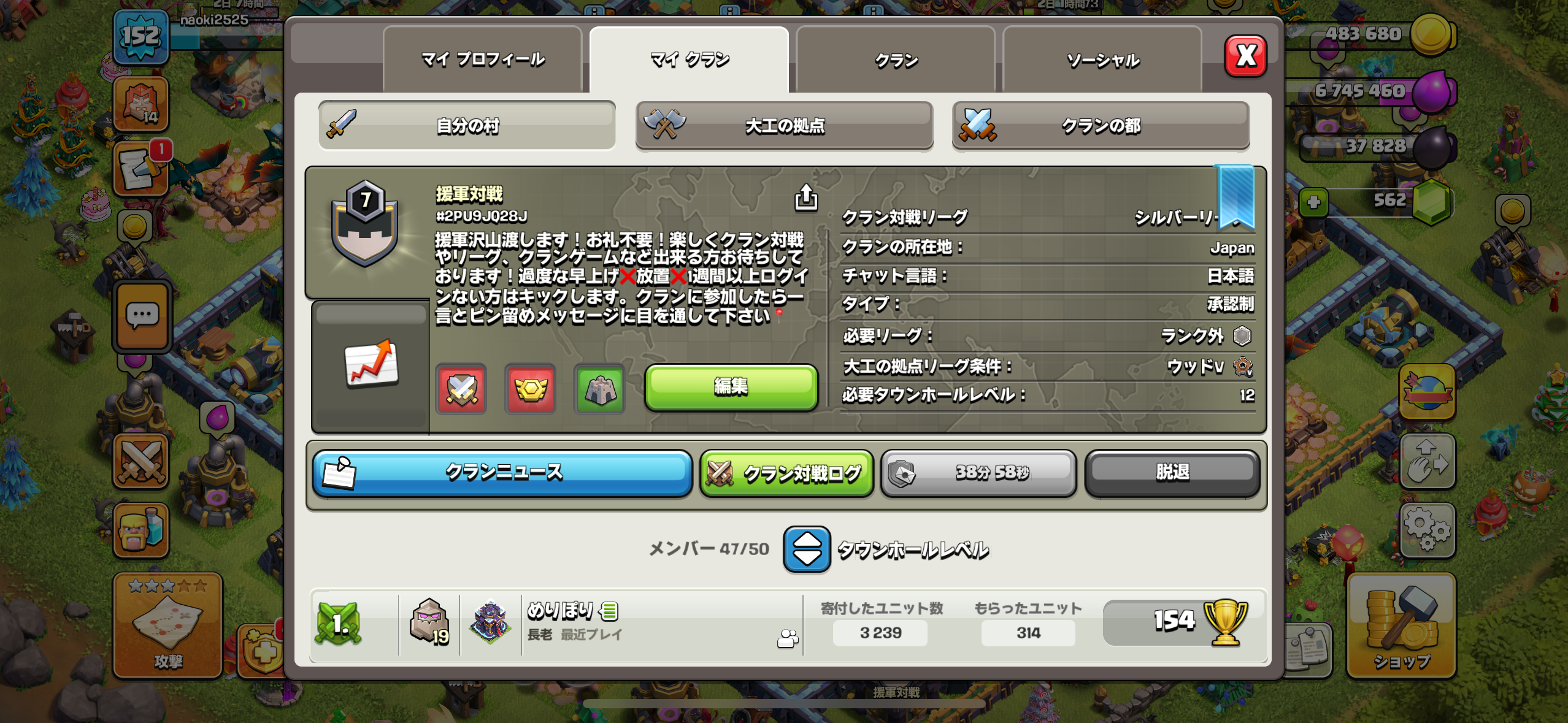 kV https://link.clashofclans.com/jp?action=OpenClanProfile&tag=2R0PC8LJV