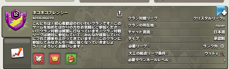 タウンホールレベルや寄付数などの条件ありません!一緒に楽しくプレイできる方募集中です!初心者大歓迎!援軍貰い放題!さっさとクラン加入申請ボタン押しましょう!!