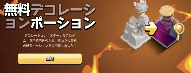 公式ストアにて、デコレーションの無料配布が行われています。既に所持している人は、研究ポーションを1個受け取れるイベントです。