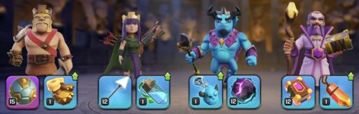 TH10~11では、ヒーロー装備をまともに強化することができません。建物全体のHPと防衛設備のダメージが低い攻撃環境となっているため、装備の強さが極端に偏っています。まだヒーローのステータスが低いので、ユニットを中心とした戦術を使ったほうが結果を出しやすいです。