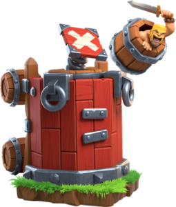 味方に向かって援護ユニットの詰まった樽を発射する固定式マシンです。樽には複数のユニットを投入できますが、クランの城のユニットは1体までです。樽の数には限りがあるため、使うタイミングを見極めましょう!